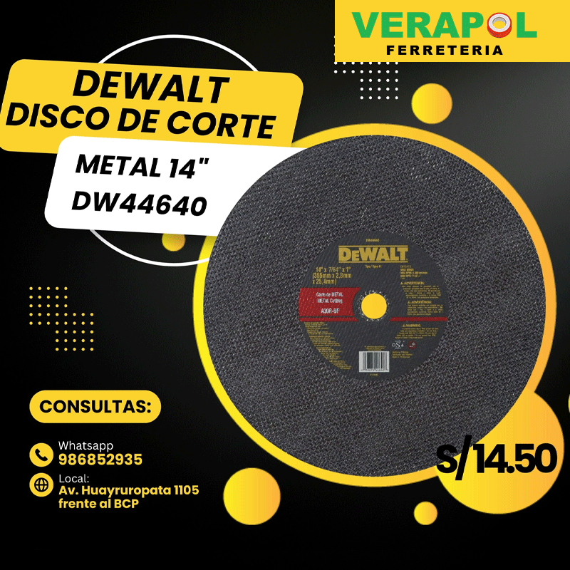 ¿Buscas un disco de desbaste para metal que combine durabilidad, potencia y seguridad? El Disco de Desbaste 7 pulgadas DW44580 DeWalt es la solución perfecta para profesionales que necesitan cortes y desbastes eficientes en todo tipo de superficies metálicas.