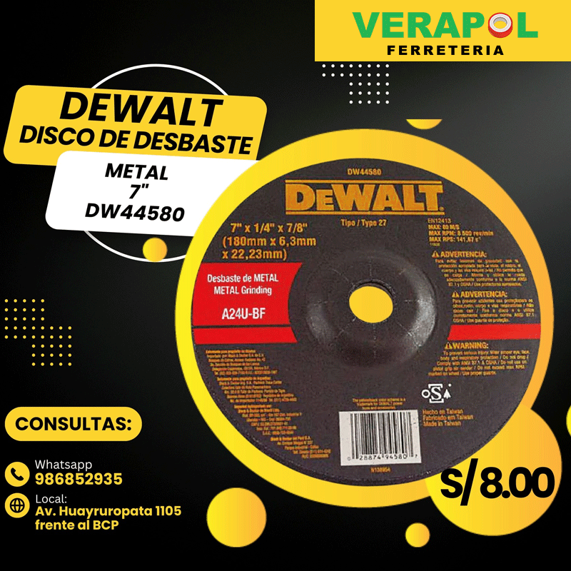 Disco de Desbaste 7" DW44580 DeWalt – Máximo rendimiento en trabajos pesados